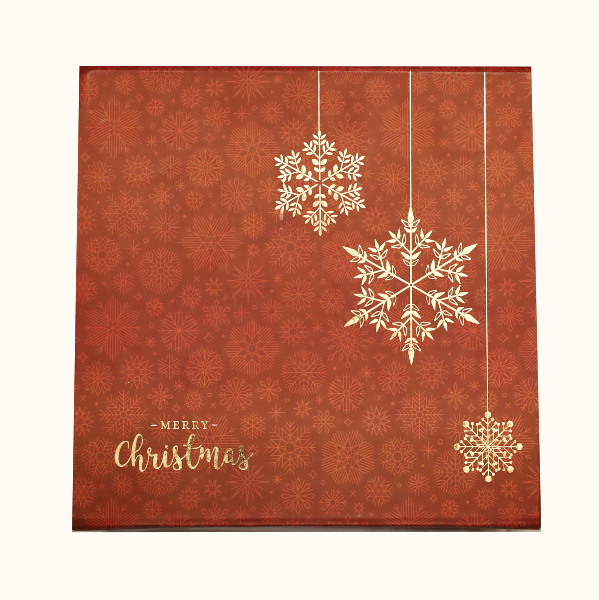 Rich Moist Fruit Cake (450g), Butter Salt Cookies (100g), Almond Chocolate Barks (100g) Granola (100g), Christmas Themed Coasters, Red and Gold Christmas Themed Gift Box 9in x 9in x 4in